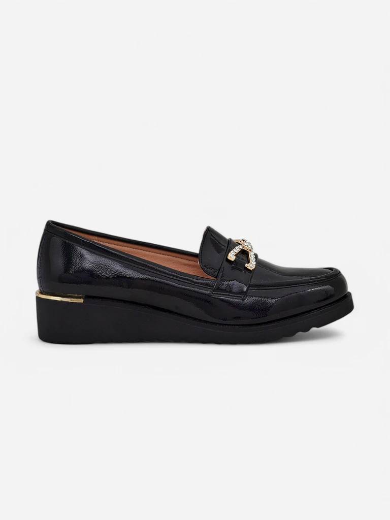 • Красивые женские мокасины на низком каблуке. Модель классическая сзади и выполнена из эко-кожи с натуральными кожаными стельками. Носок округлый и украшен золотыми элементами с цирконием. Идеальная основа для многих повседневных образов!