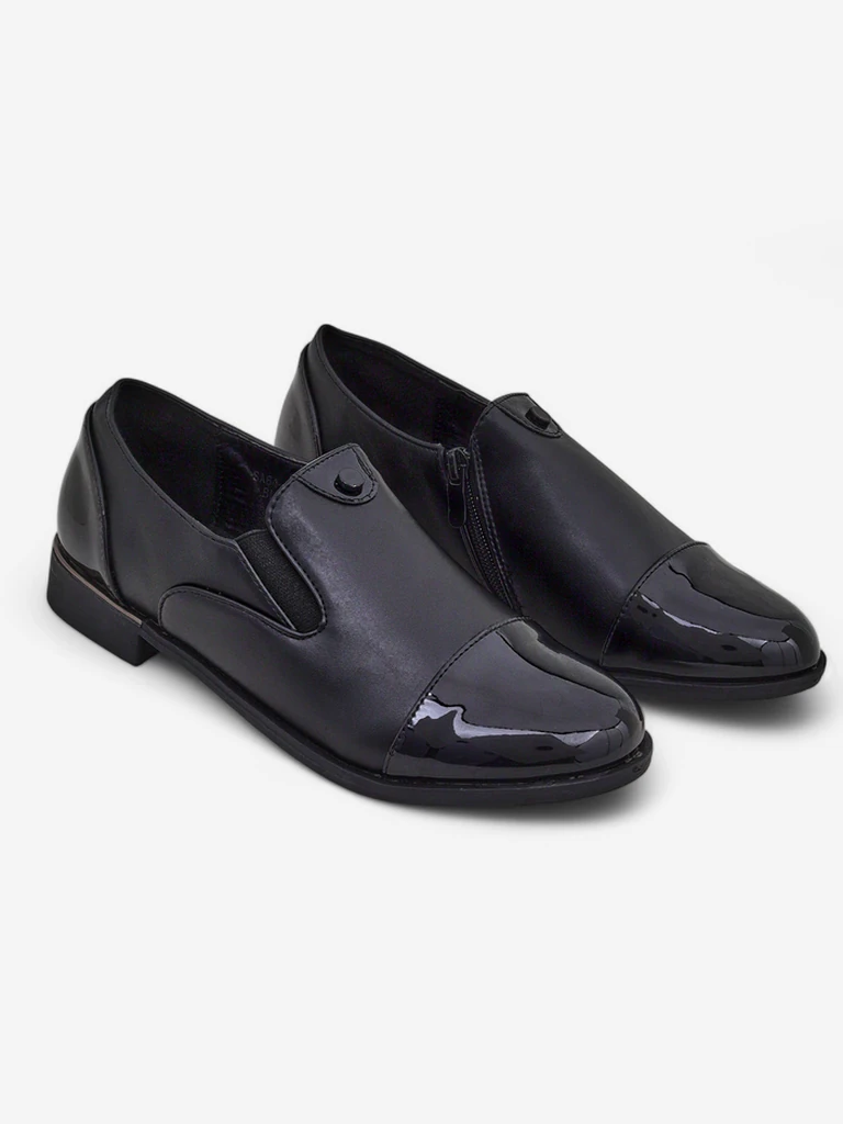 • Damskie półbuty na płaskiej podeszwie. Cholewka jest wykonana z eko skóry matowej i lakierowanej, wkładka to skóra ekologiczna. Idealna baza do codziennych outfitów!