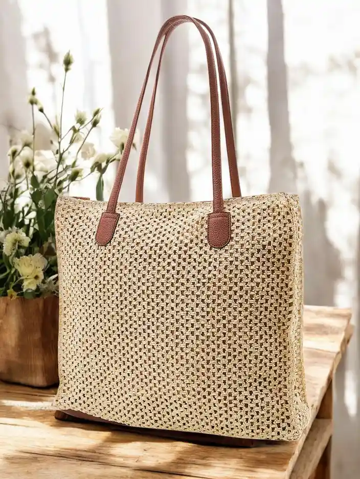 • Большая женская соломенная сумка для лета - идеальный выбор для теплых дней. Легкая и вместительная, она прекрасно подходит для пляжа, отдыха или повседневных прогулок, добавляя каплю летнего шарма к любому наряду. У нее есть