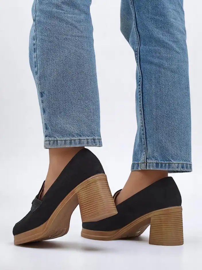 • Красивые женские лоферы на широком каблуке. Эта модель в повседневном стиле выполнена из эко-замши со стелькой из эко-кожи. Закругленный носок. Идеальная основа для множества повседневных образов!