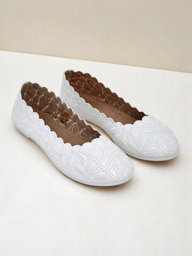 - Превосходные балетки из ткани с круглым носком. Верх украшен изящной цветочной вышивкой. Мягкая тканевая стелька обеспечивает комфорт. Они идеально подходят для элегантных и модных образов!