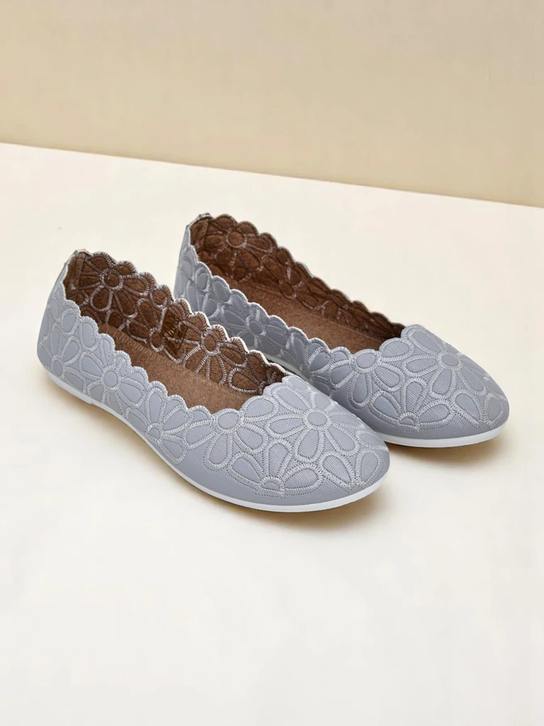 - Превосходные балетки из ткани с круглым носком. Верх украшен изящной цветочной вышивкой. Мягкая тканевая стелька обеспечивает комфорт. Они идеально подходят для элегантных и модных образов!