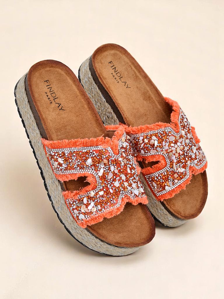 - Женские тапочки с морскими украшениями из ткани, с инсталляцией из эко-замши и утолщенной подошвой – стиль и комфорт для лета.