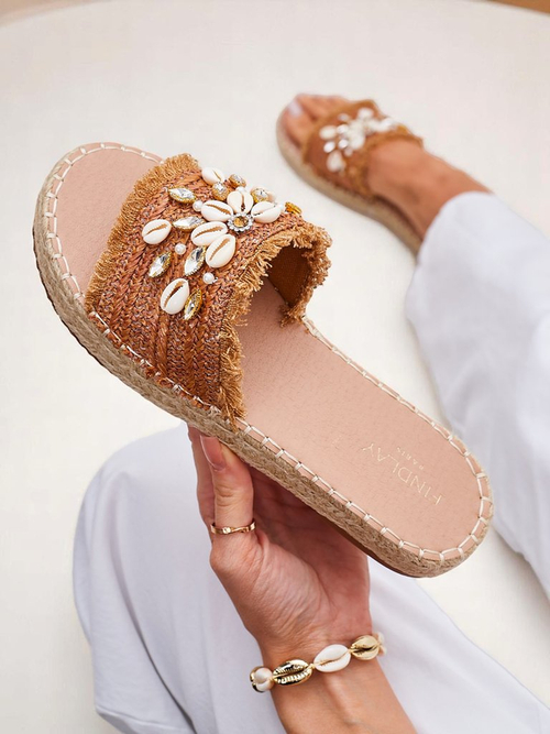 Сандалии Royalfashion Callista Boho Camel на плоской платформе с ракушками
