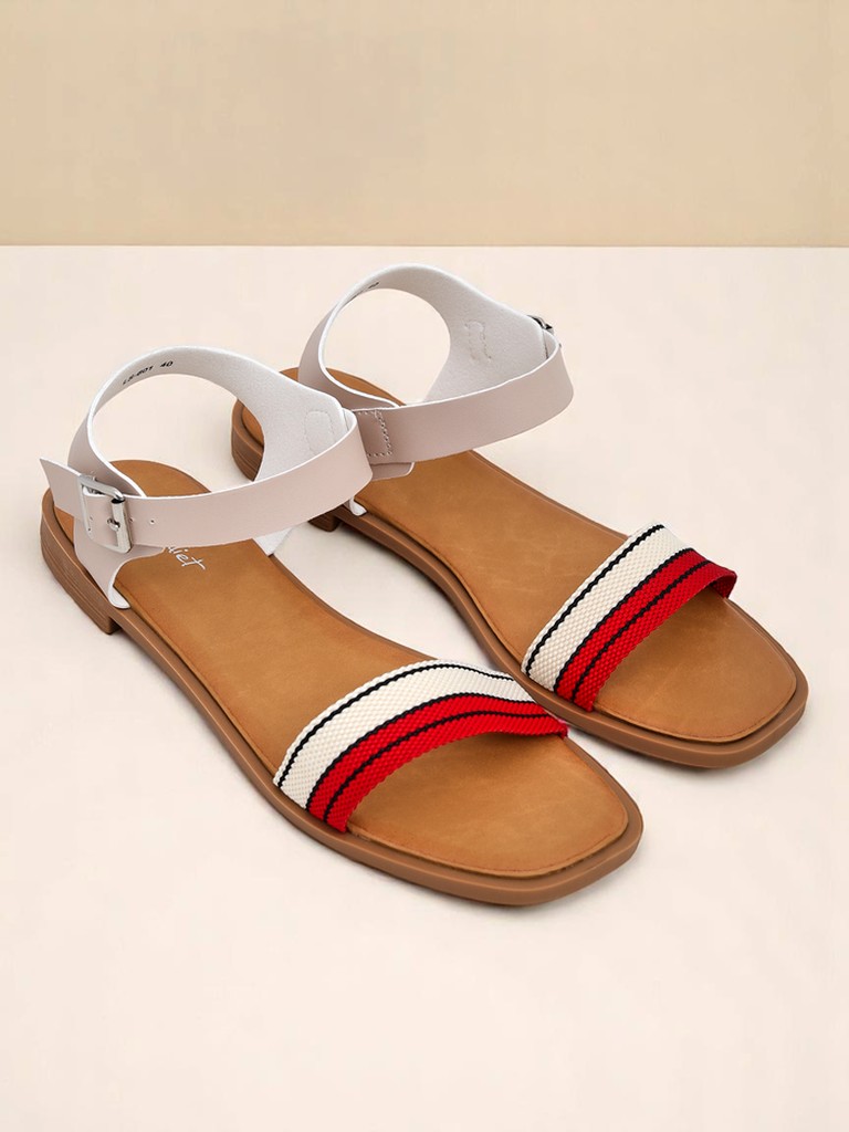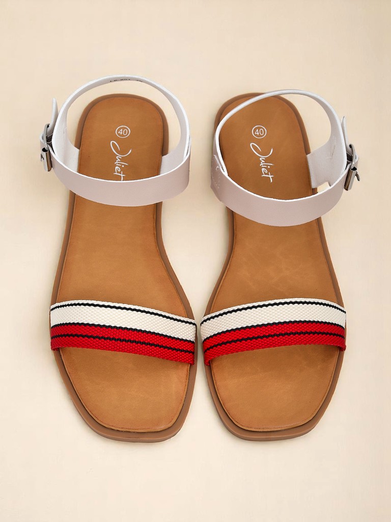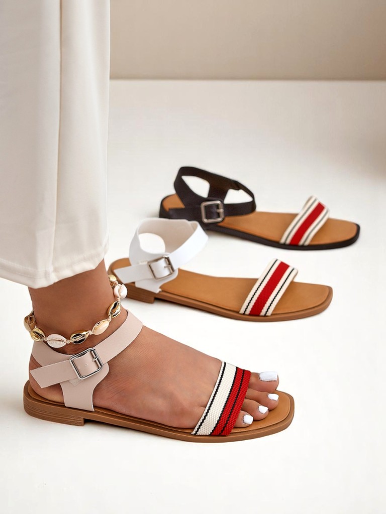 Vittoria Classico – это женские сандалии, вдохновленные итальянским шиком, разработанные для летних прогулок, встреч с друзьями или походов по городу. Верхняя часть выполнена из высококачественной экокожи, отличающейся мягкостью и эластичностью, что обеспечивает комфорт и идеальную посадку на протяжении всего дня. Передний ремешок украшен эффектной текстильной лентой в белых, красных и черных полосках – полиэстер высокой износостойкости, не выцветающий под воздействием солнечных лучей. Подкладка сандалий – мягкая экокожа из микрофибры, известная своей отличной воздухопроницаемостью, простотой в уходе и гипоаллергенностью, что подтверждается сертификатами OEKO-TEX® Standard 100. Подошва из прочного, легкого материала TPR гарантирует комфорт ходьбы, амортизацию и высокое сцепление как на городских тротуарах, так и на курортных променадах. Ключевые преимущества этой модели: удобная регулируемая пряжка на щиколотке, которая стабилизирует стопу, а также быстрое надевание и снятие. Современный, минималистичный дизайн и универсальная цветовая гамма позволяют широко использовать сандалии. Варианты образов на разные случаи: 1. Повседневный стиль: сочетание с широкими джинсами-кулотами и белой льняной рубашкой создаст легкий летний образ. 2. Нарядный стиль: сочетание сандалий с юбкой-карандаш миди и элегантной блузкой – идеально для деловых встреч в непринужденной обстановке. 3. Романтический стиль: подберите легкое цветочное платье макси и нежные украшения для повседневных прогулок. Уход и хранение: Сандалии следует чистить влажной тканью, избегать намокания и хранить в сухом, хорошо проветриваемом месте, вдали от прямых солнечных лучей, чтобы сохранить эластичность материала и яркость цветов. Благодаря используемой технологии пошива и прочным материалам, обувь устойчива к ежедневному износу и отлично подходит для городской жизни. В настоящее время сандалии на плоской подошве с ремешком контрастных цветов – сильный тренд летней моды, как на подиумах, так и в повседневных образах. Это сочетание комфорта, универсальности и итальянского стиля, которое прекрасно отвечает современным потребностям женщин.