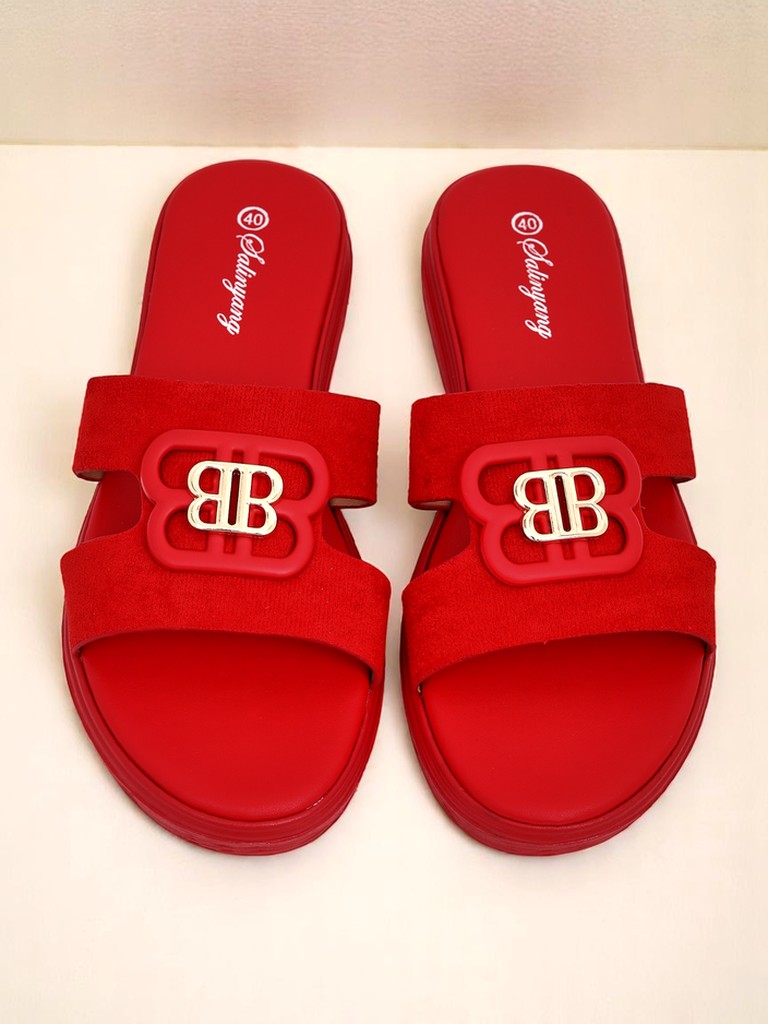 • Стильные плоские шлепанцы из эко-замши со стелькой из эко-кожи. Носок украшен элегантной пластиковой аппликацией. Комфорт и шик, идеально подходящие для летних дней.