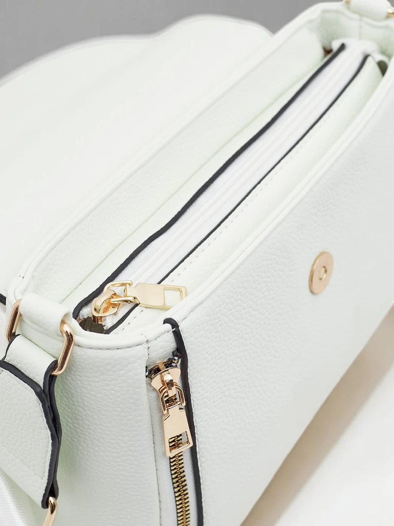- Компактная сумка из экокожи с одним отделением и двумя практичными карманами. Регулируемый ремень позволяет подобрать нужную длину, а декоративный передний элемент придаёт элегантность. Идеально подходит для повседневного использования — сочетает стиль и