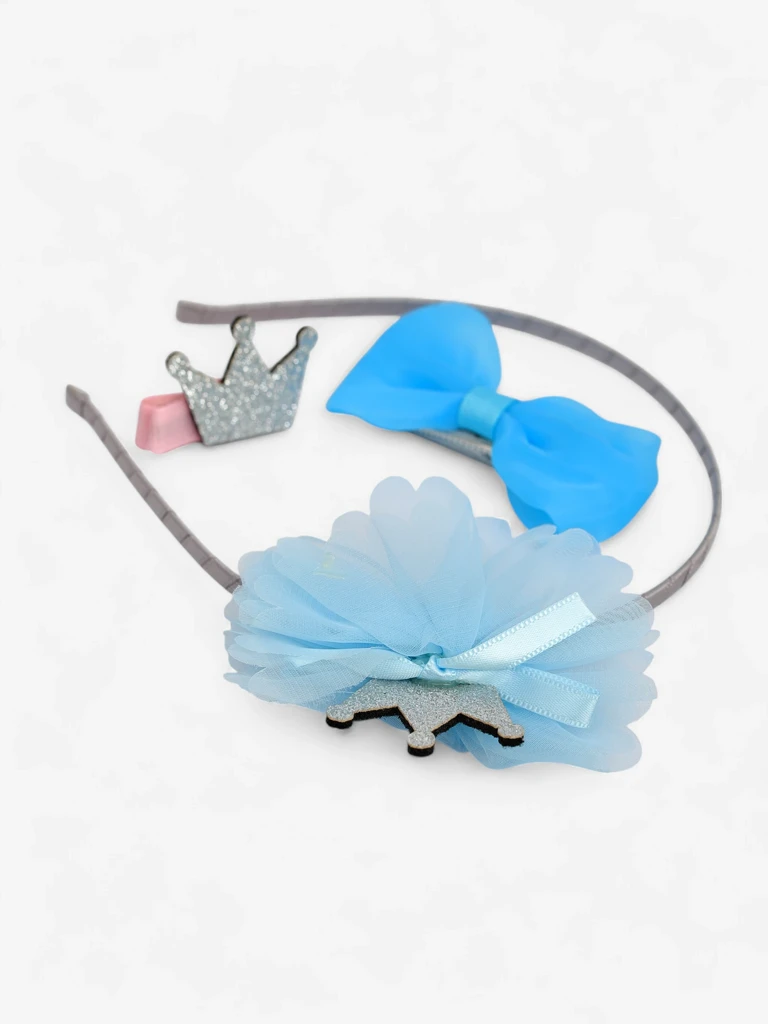 Aurelia Bambina Set – это уникальный набор аксессуаров для волос для девочек, который привнесет много радости и очарования в каждый образ вашего ребенка. В комплекте вы найдете удобную тканевую повязку, обшитую нежным атласом, украшенную мягкой, тюлевой розеткой и блестящей короной. В комплект входят две заколки – одна с блестящей короной на розовой ленте, другая с синим, тканевым бантиком. Аксессуары изготовлены из высококачественных материалов: тюля, атласа, металла и прочного глиттерного фетра, безопасных для нежных детских волос и кожи. Технология производства включает в себя точное ручное шитье и безопасное склеивание сертифицированными, нетоксичными клеями, обеспечивающее долговечность и комфорт использования.Преимущества набора Aurelia Bambina: