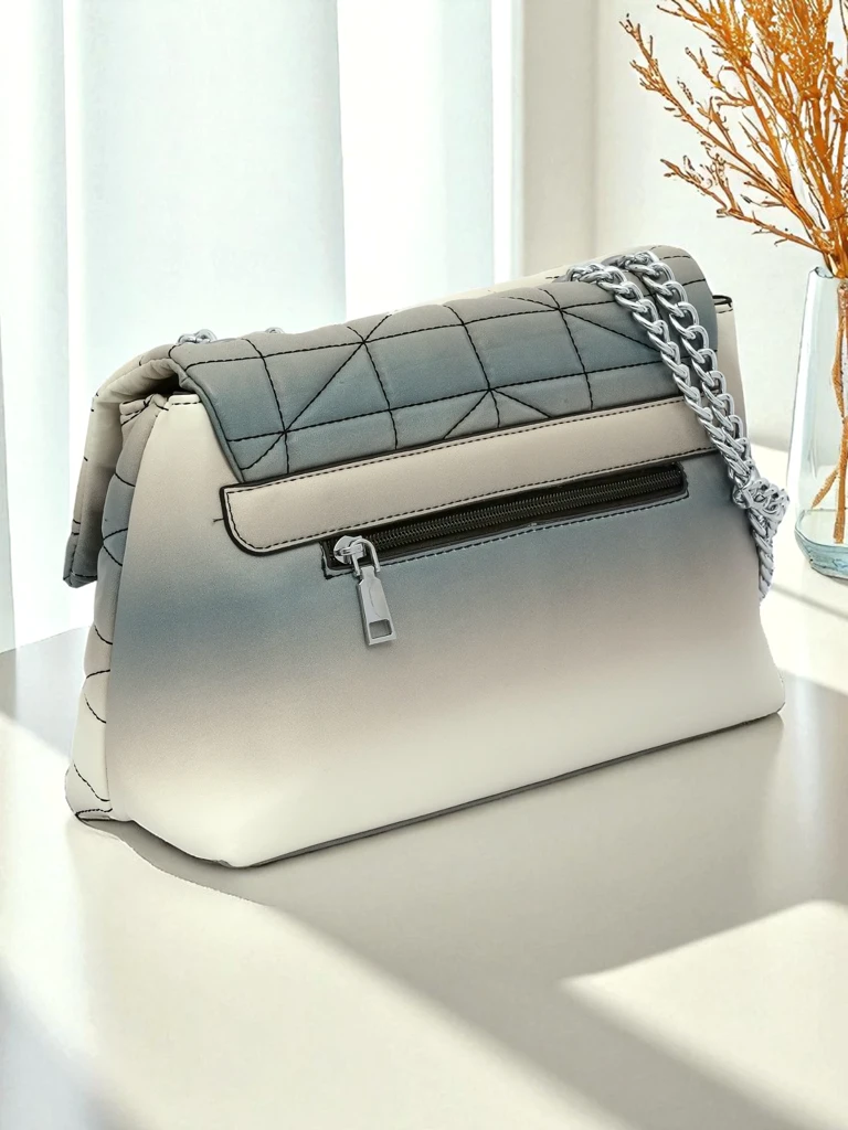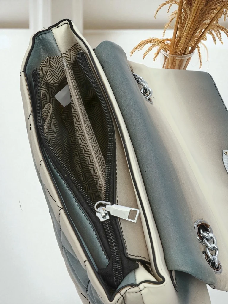 - Элегантная сумка-конверт из экокожи с эффектом омбре. Закрывается на молнию и кнопку. Металлическая цепочка вместо ремешка придаёт шарм. 1 отделение, идеально подходит для самых важных вещей для вечернего выхода и особых случаев.