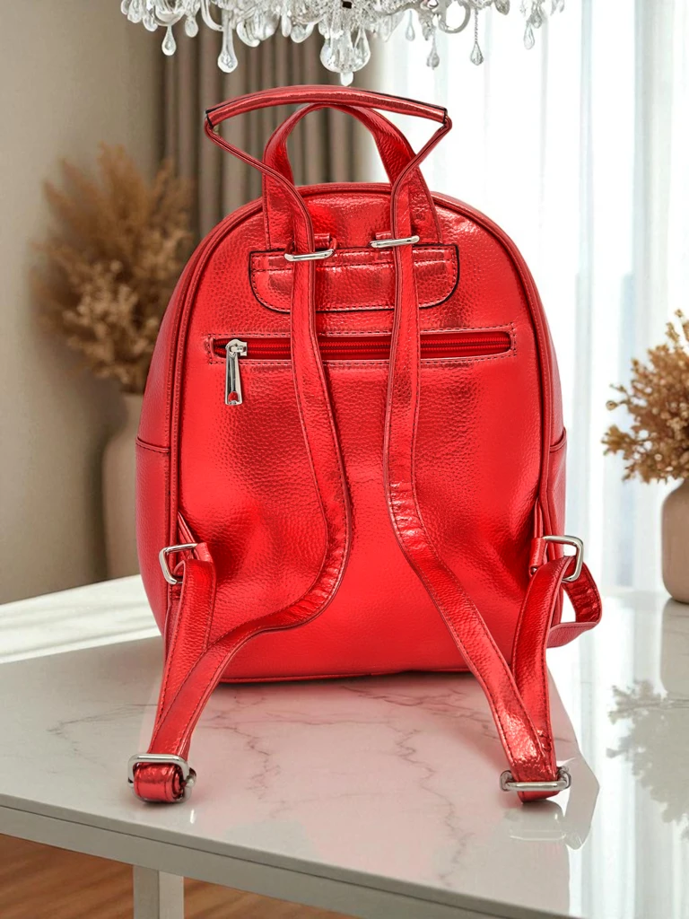 - Стильный рюкзак с металлическим блеском и модным полосатым узором. 1 вместительное отделение, 2 внешних кармана и регулируемые плечевые ремни обеспечивают комфорт и функциональность. Идеально подходит для повседневного использования и городских прогулок.