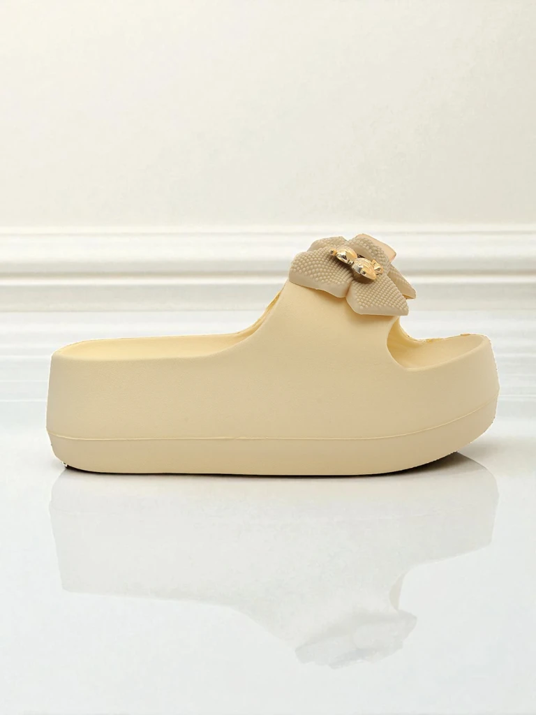 - Отличные женские резиновые шлепанцы на платформе. Верх украшен декоративным бантом. Идеальный выбор для отпуска!