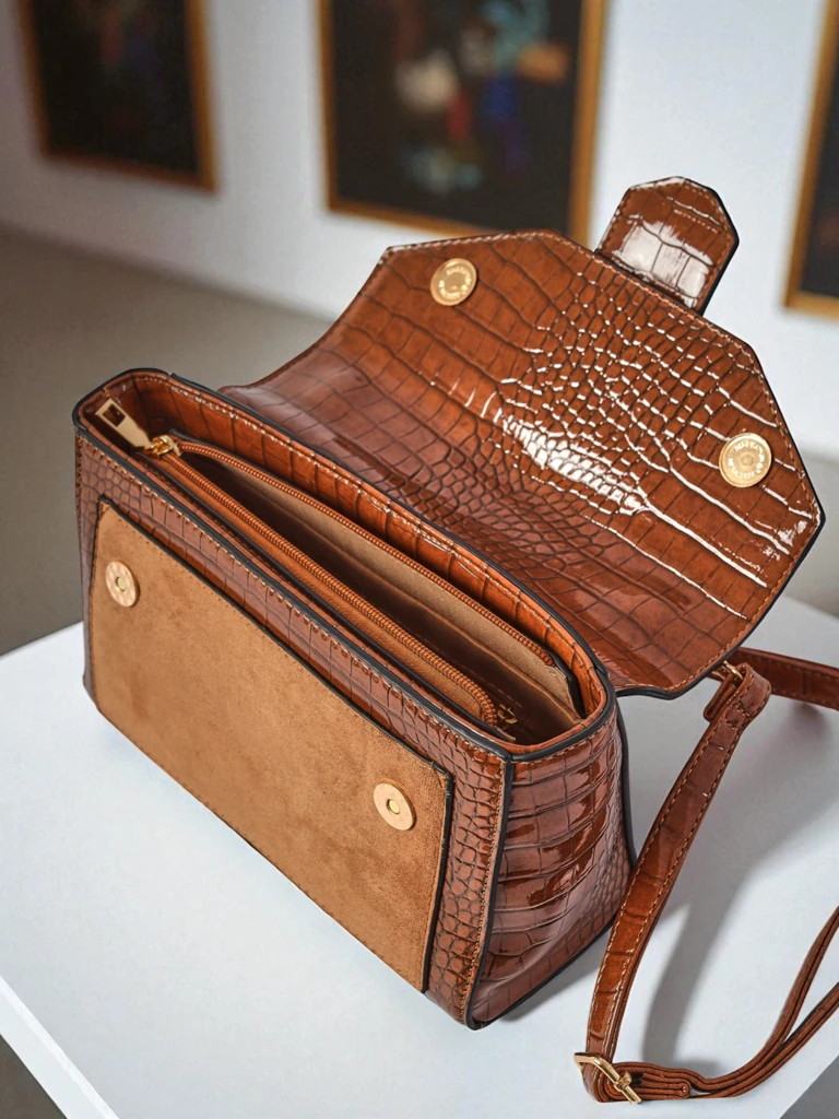 Сумка Callista – это сочетание изысканного стиля с современным подходом к экологии. Она изготовлена из высококачественной экологической кожи и замшевой экокожи, которые не только воспроизводят естественную фактуру, но и являются экологически чистыми. Процесс производства этих материалов основан на ограничении использования химических веществ и потребления воды, что подтверждает их проэкологический характер. Замшевый фронт сумки восхищает мягкостью на ощупь, а поверхности из экокожи с фактурой крокодила добавляют всей форме роскоши и характера. Золотая фурнитура и прочная молния в сочетании с магнитом обеспечивают безопасность хранимых вещей. Внутреннее пространство сумки продумано – многочисленные карманы и разделение пространства позволяют удобно организовать самые необходимые аксессуары, такие как телефон, кошелек или ключи. Модель Callista предназначена для женщин, которые ценят удобство, эстетику и современные решения. Самые важные преимущества сумки Callista: - Легкая конструкция и компактный размер (24x16x10 см) делают ее идеальной для повседневных выходов и встреч. - Экологичные материалы гарантируют долговечность, легкость чистки и устойчивость к повреждениям. - Универсальный, темно-коричневый цвет вписывается в актуальные тенденции моды и подходит ко многим стилизациям. Предложения по стилизации: 1. Комплект casual: облегающие джинсы, белая футболка, карамельное пальто и сумка Callista – идеальный образ для покупок и встречи с подругами. 2. Business chic: юбка-карандаш, шелковая рубашка и туфли на шпильках – элегантная сумка дополнит office look для важной деловой встречи. 3. Стиль бохо: летящее платье, ковбойские сапоги и длинный кардиган – Callista придаст легкости и современности любой летней стилизации. Как ухаживать за сумкой: - Чистить влажной тряпкой с мягким моющим средством, предназначенным для экокожи и замши. - Хранить в проветриваемом месте, желательно с наполнителем внутри, предохраняющим форму. - Избегать длительного воздействия солнечных лучей и контакта с водой. Сумка Callista вписывается в новейшие тенденции сезона – сочетание классического коричневого цвета и дуэт замшевой структуры и кожи с имитацией крокодила заметен на мировых подиумах. Это must have для каждой современной женщины, ценящей стиль и функциональность.