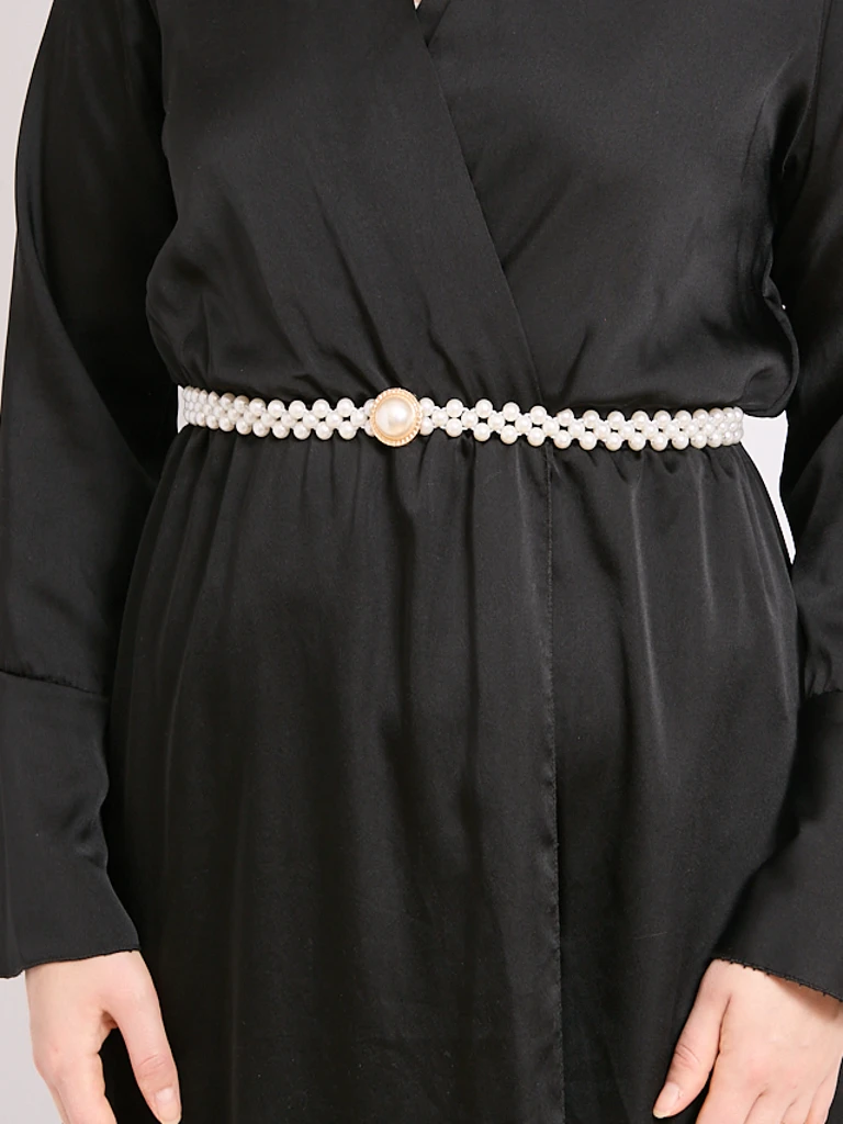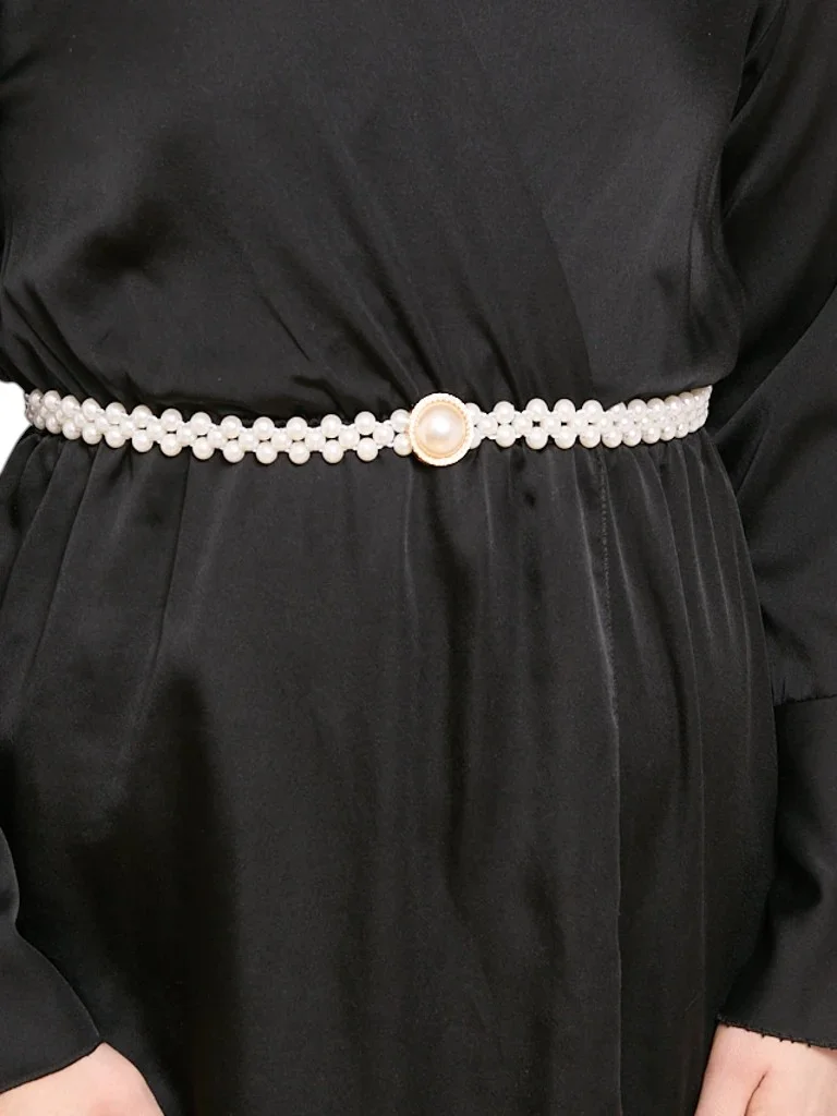 Женский ремень с жемчугом на резинке