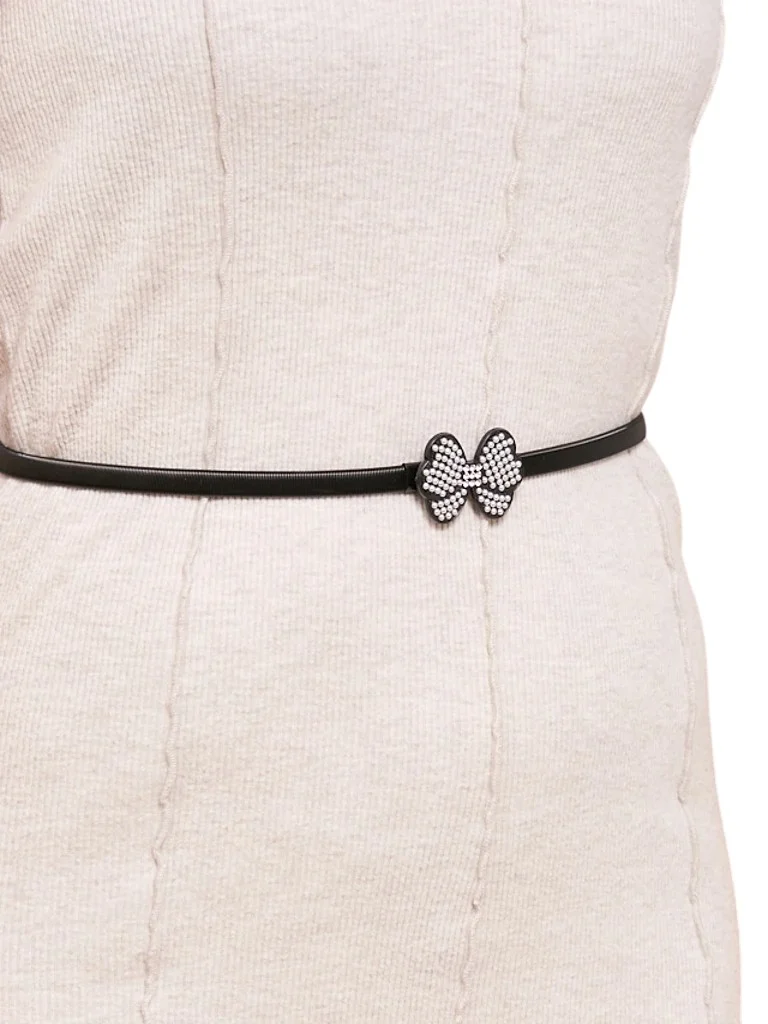 Черный женский ремень Melina с металлической бабочкой в стиле latino glam
