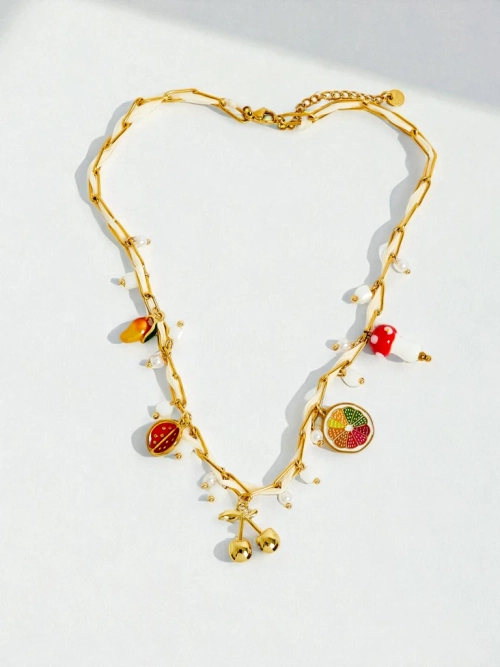 Позолоченное колье Hera Classica с фруктовыми мотивами и эмалью