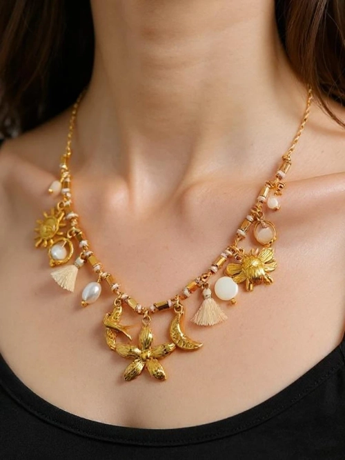 Ожерелье Aurora Floralis - Золотые Шармы и Жемчуг Eleganza