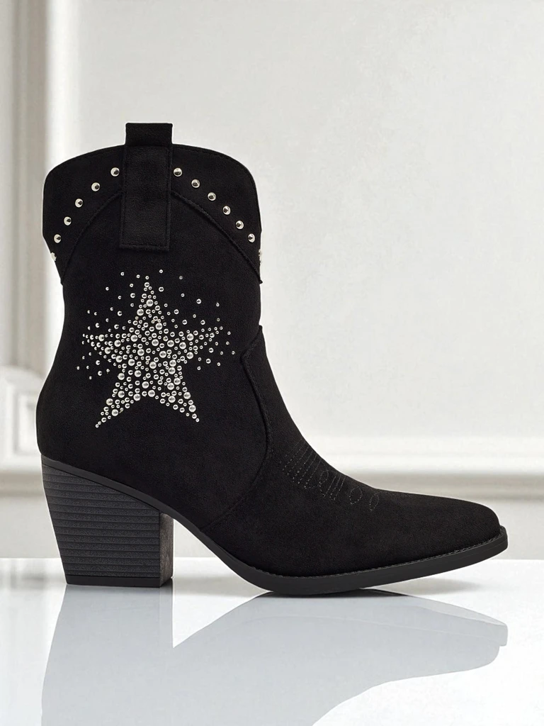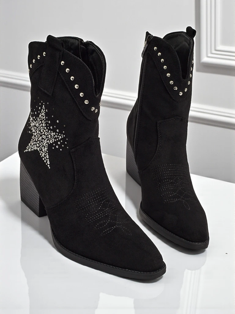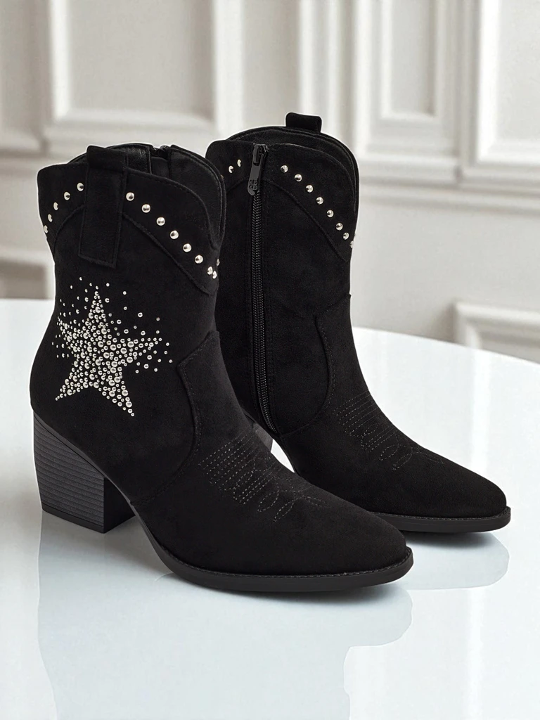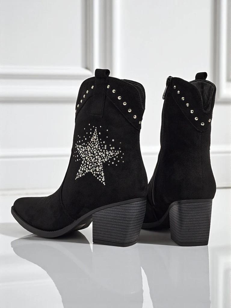 Женские ковбойские ботинки на каблуке с декоративной звездой из циркония FableStray