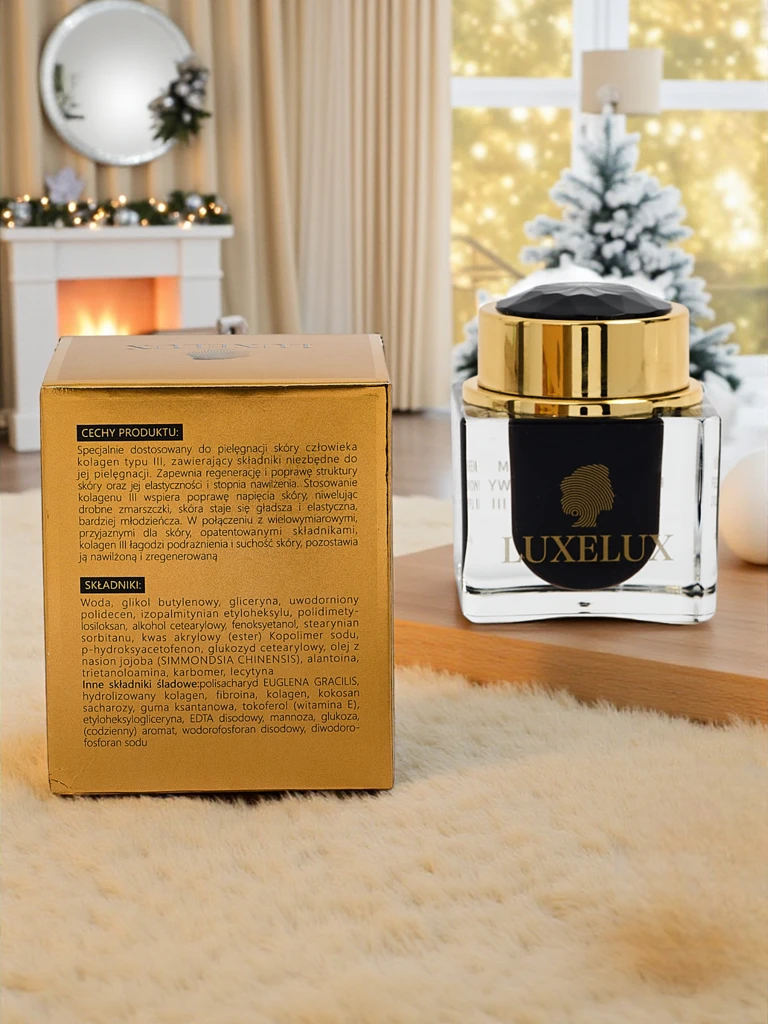 - Роскошный антивозрастной крем Luxelux с коллагеном III типа интенсивно регенерирует и укрепляет кожу. Благодаря сочетанию инновационных технологий и азиатских ингредиентов обеспечивает гладкость, эластичность и более молодой вид. Идеально подходит для дне