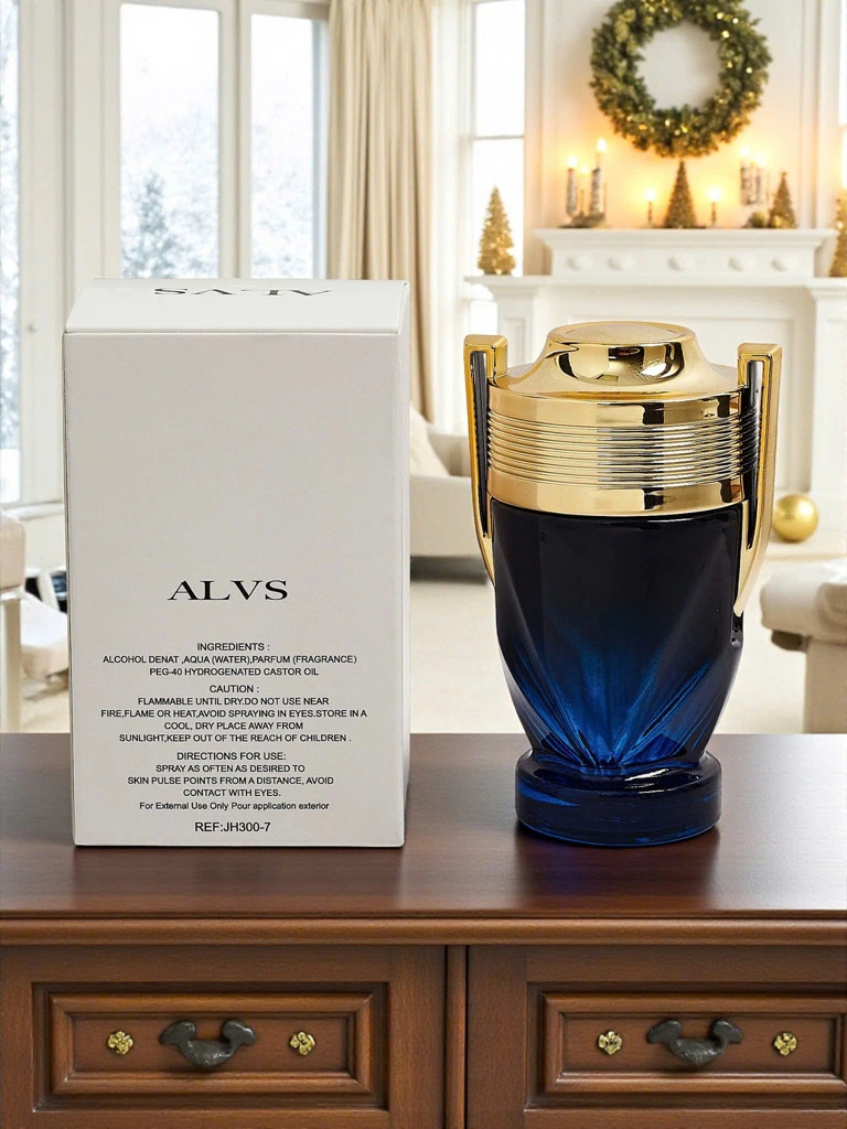 Perfumy ALVS łączą w sobie wyjątkowy design i znakomitą jakość. Zostały stworzone z myślą o nowoczesnym mężczyźnie, który ceni sobie elegancję i oryginalność. Butelka o wyjątkowym kształcie przypominającym puchar emanuje luksusem, a kolorystyka w odcieniach granatu i złota przyciąga wzrok.