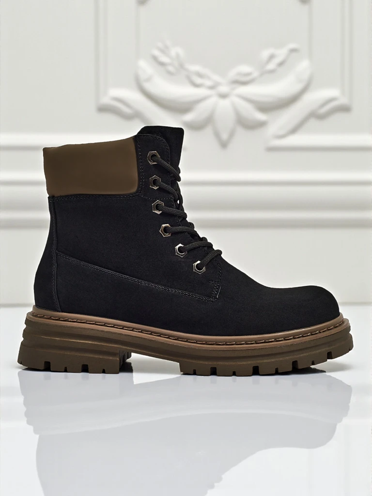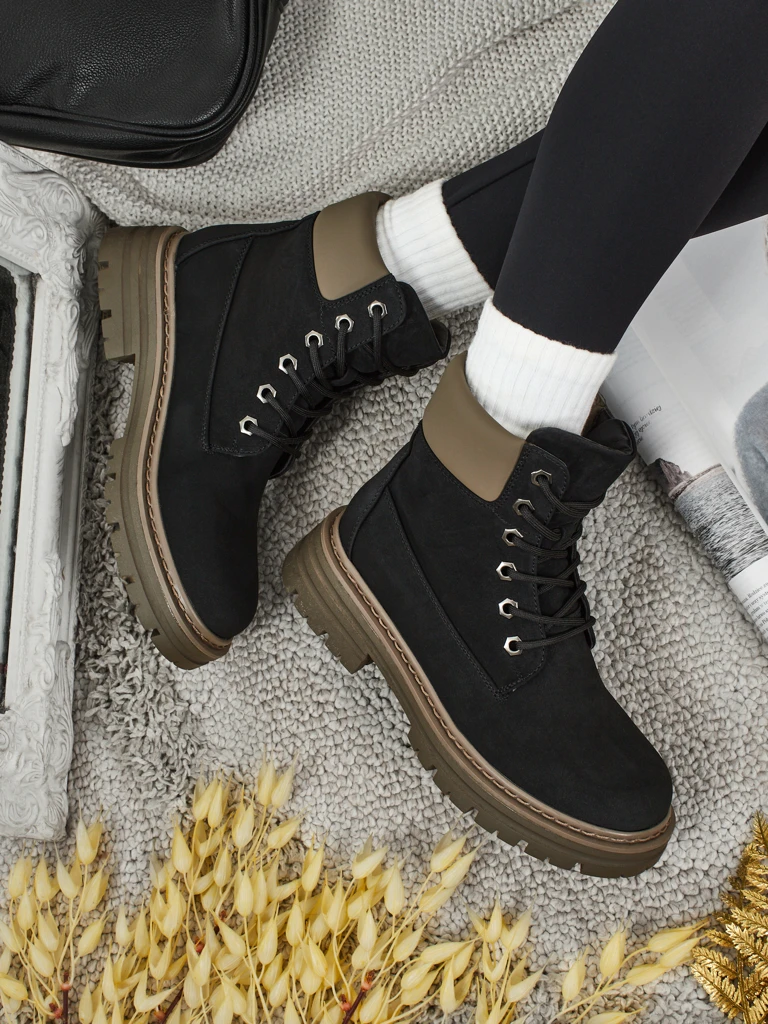 • Женские трекинговые ботинки-траперы со шнуровкой. Материал верха - экологическая кожа. Внутри стелька из экологической кожи. Идеально подходят для зимнего времени!