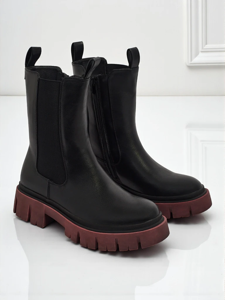 Высокие женские ботинки из экокожи на цветной подошве Dorvella