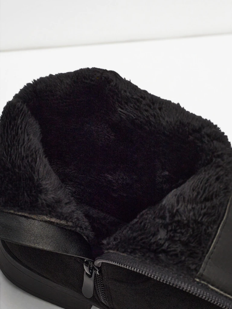 • Красивые и классические ботинки на плоской подошве, выполненные из экологичной замши. Внутри утеплены мехом. Отличная база для осенних стилизаций!