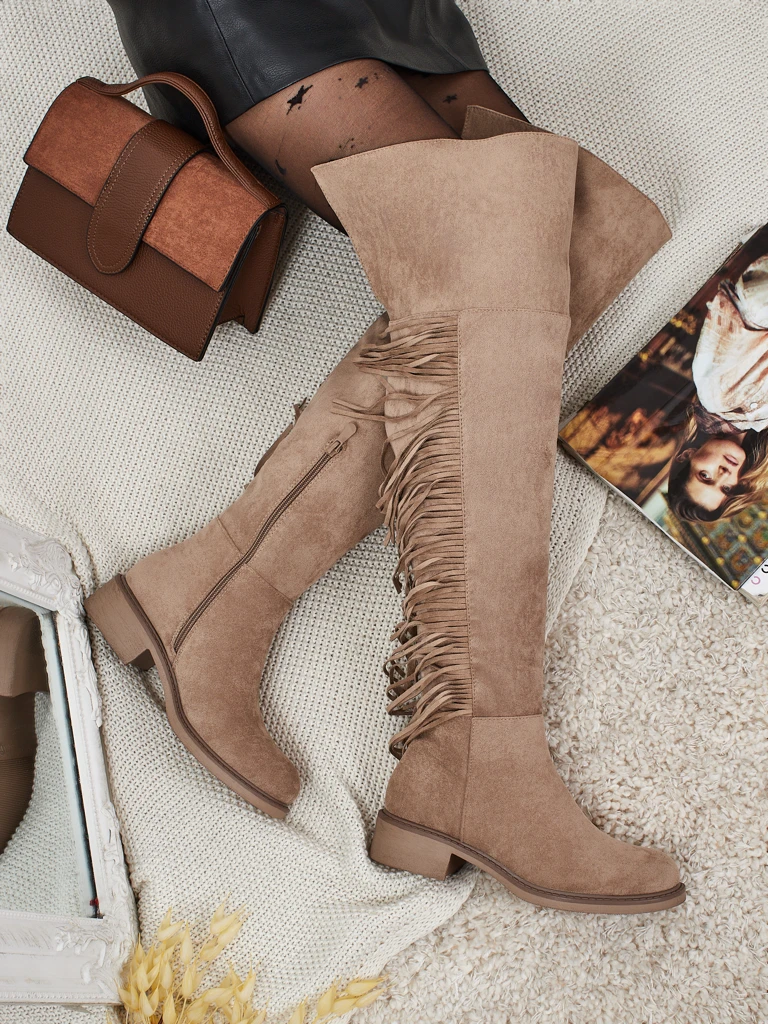Женские ботфорты из эко-замши с бахромой Ostrelia