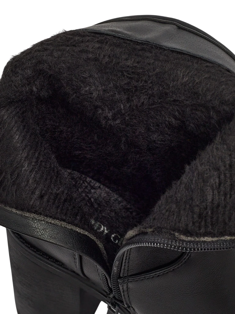 • Прекрасные ботильоны на каблуке, выполненные из экокожи. Модель застегивается на молнию. Модель слегка утеплена мехом, имеет декоративную пряжку сбоку голенища. Идеальный выбор на осень!