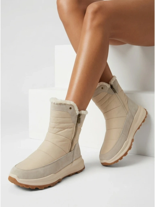 - Отличные женские зимние ботинки-снегоходы на толстой подошве. Верх выполнен из экокожи и скользкой ткани, внутренняя часть утеплена мехом. Модель застегивается на молнию. Идеальная база на зиму!