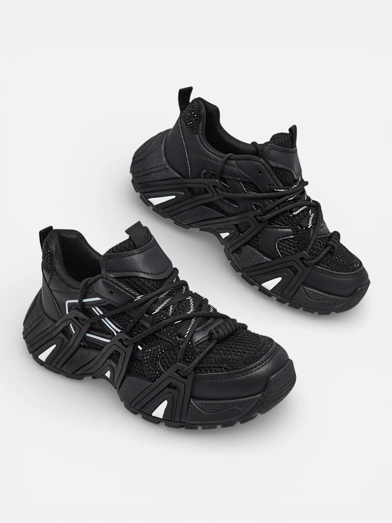 Кроссовки Aurora, изготовленные из высококачественных синтетических материалов, отличаются прочным исполнением и вниманием к деталям. Они имеют сетчатый верх, обеспечивающий вентиляцию, а также резиновую подошву, гарантирующую хорошее сцепление. Благодаря используемым материалам обувь прочная и устойчивая к повреждениям.