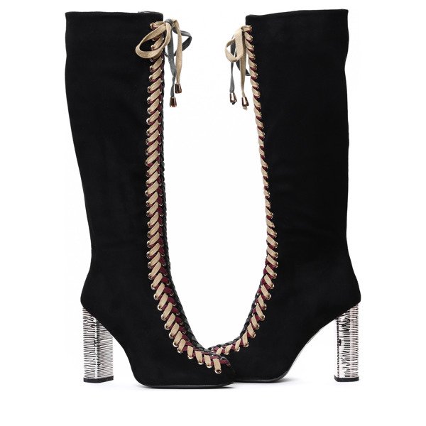 Черные сапоги на плетеных шнурках Kira - Обувь