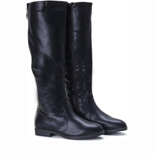 Czarne kozaki z ozdobnym zamkiem Kiley - Obuwie