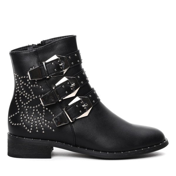 - Niepowtarzalne botki zdobione dżetami. Delikatny, płaski obcas. Obuwie wykonane z ekologicznej skóry. Na cholewce ozdobne trzy paski. W środku delikatne ocieplenia w formie futerka.