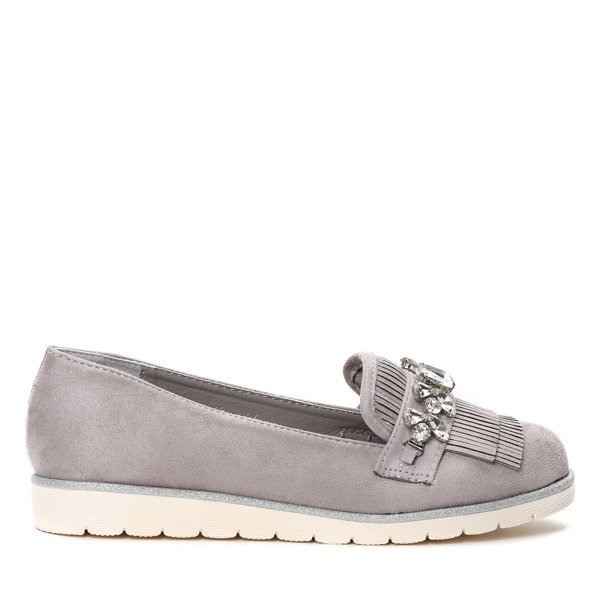 Szare mokasyny z frędzlami i cyrkoniami Micheline- Obuwie