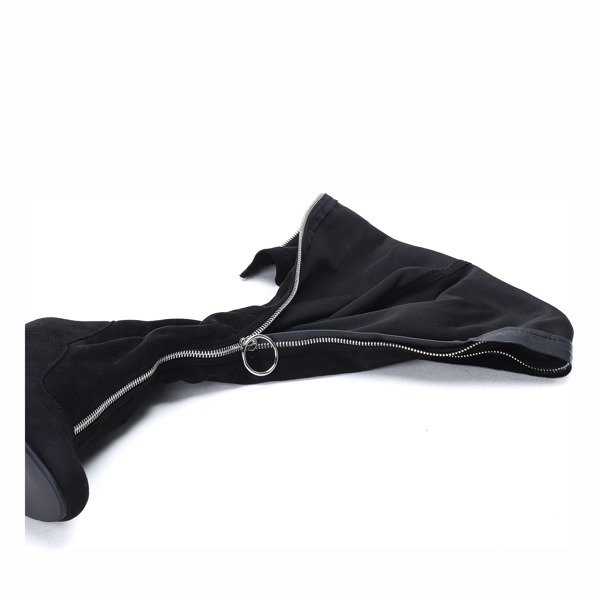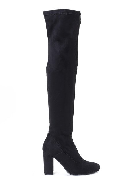 - Элегантные длинные сапоги на столбе из экологической замши. Модель застегивается на молнию спереди. Обувь отлично подойдет как для повседневной, так и для вечерней одежды.