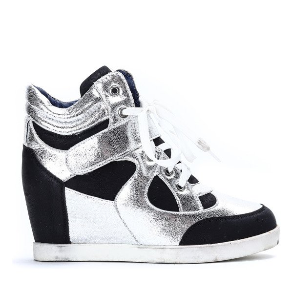 Czarno-białe sneakersy na koturnie Lefkada - Obuwie