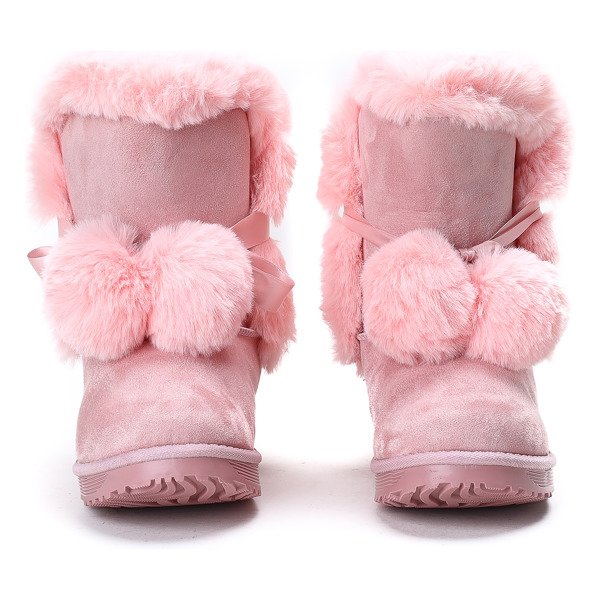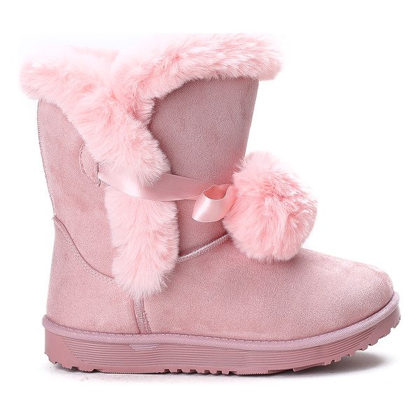 Розовые зимние сапоги с помпонами Bobo - Обувь