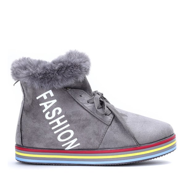 • Стильные спортивные ботинки из эко-замши. Верх украшен принтом «FASHION», а подошва - цветной тесьмой. У них меховой утеплитель с внутренней стороны. Модель на шнуровке и на молнии.
